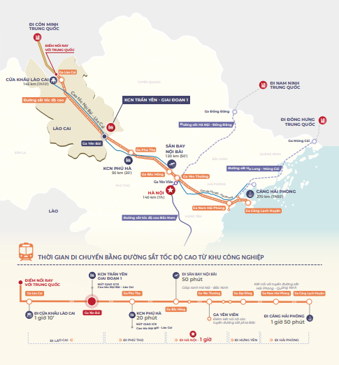 主要高速公路、国道以及老街–河内–海防高速铁路(计划于2025年开工)将有助于实现快速高效的货物运输。